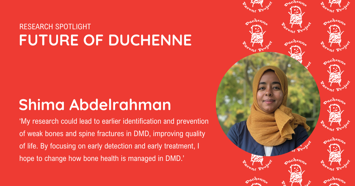 Dr. Shima Abdelrahman van de University of Glasgow onderzoekt hoe we botbreuken bij jonge mensen met Duchenne spierdystrofie kunnen voorkomen. Haar onderzoek richt zich op het versterken van de botgezondheid en het voorkomen van wervelbreuken bij Duchenne patiënten.