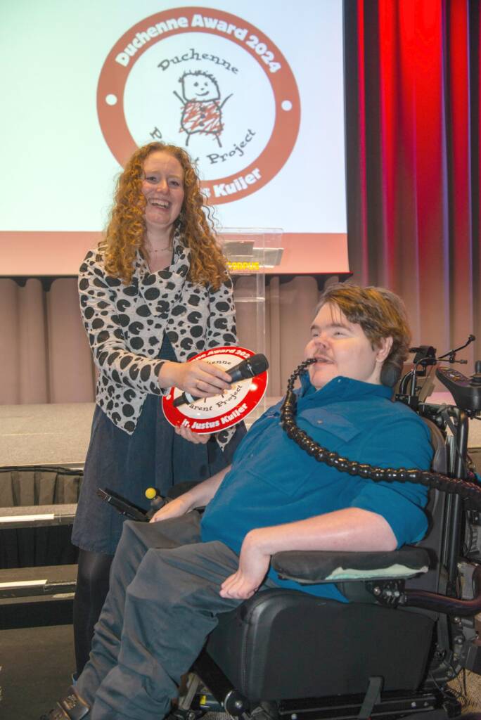 Justus, die zelf Duchenne spierdystrofie heeft, ontving de award onder een warm applaus van de aanwezigen.
